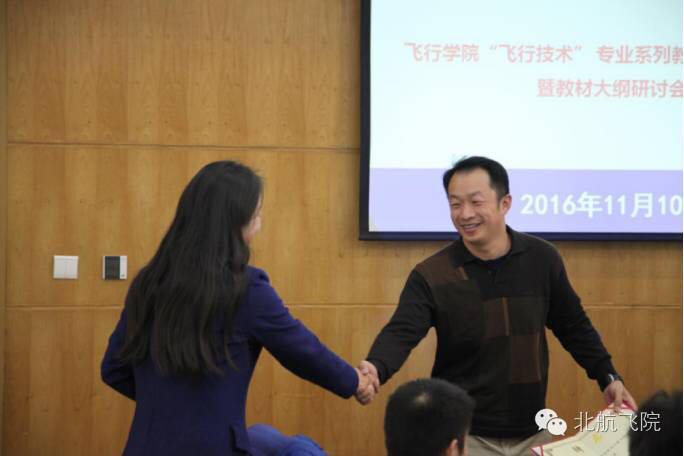 介绍过后,朱颖书记向学院“飞行技术”专业系列教材编委会编委以及专业教材主编颁发聘书。