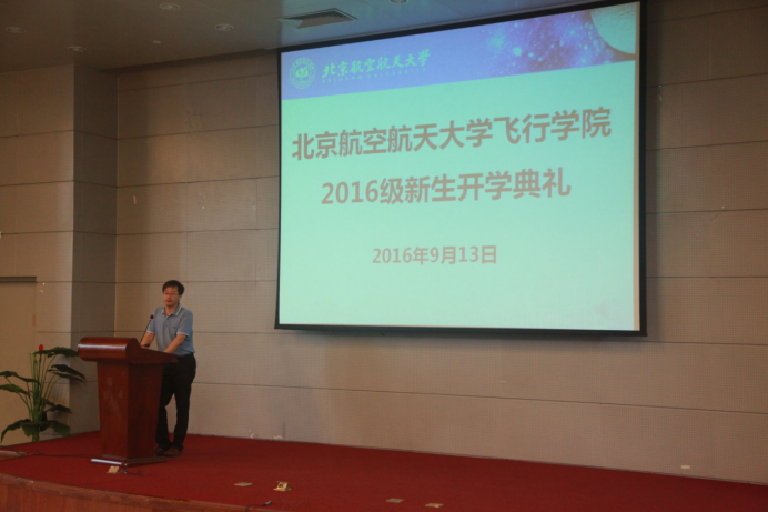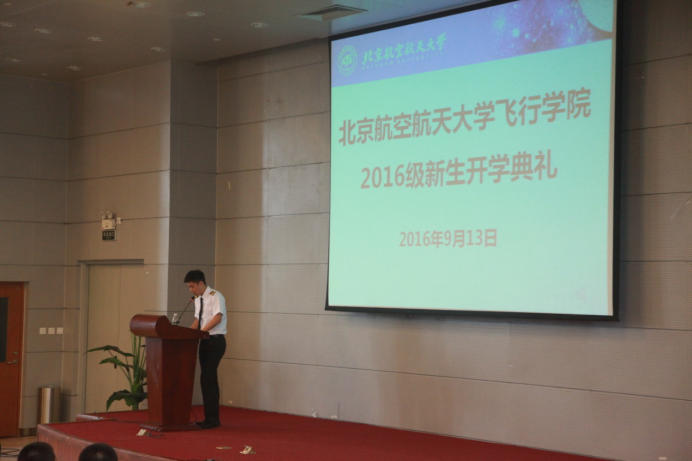 在校生代表,2012级学员王帅同学也在开学典礼上以回国师兄的身份传授了自己在学院学习与生活经验,并简谈自己在国外学飞的经验,使在座新生受益匪浅。