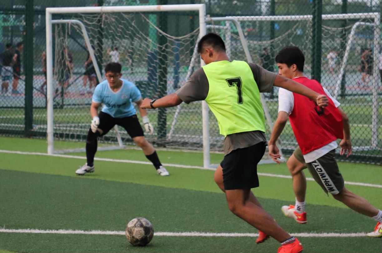 随后,精彩的决赛随即上演。决赛双方是22级的13+16班联队和14班。决赛开始前,学院沈老师为比赛开球,随着皮球的滚动,决赛正式拉开帷幕。
