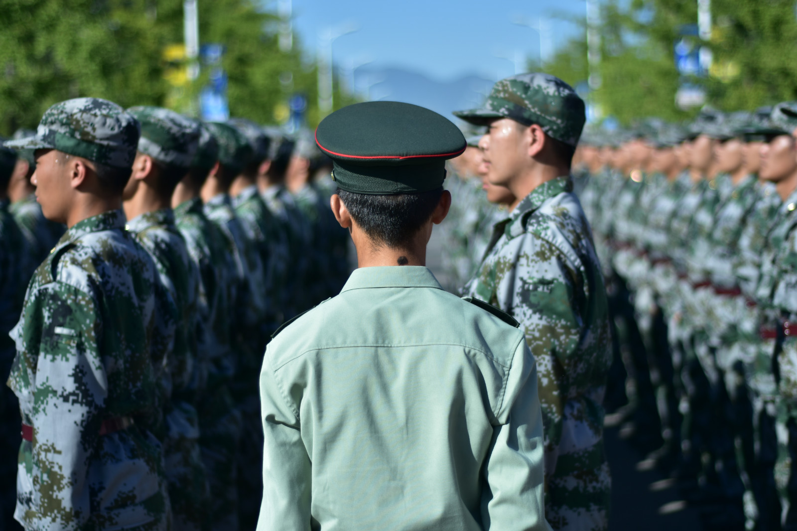 在下午,教官对我们的队列进行了调整训练,让我们感受到军人在队列中严肃紧张的训练氛围,以前每次观看阅兵,都觉得军人们整齐划一的队列令人叹为观止,如今真实体会到,才发现队列这种事真的不是一朝一夕就能练出来的,要有强烈的集体意识,和令行禁止的团结意识,才能做到走出整齐划一的步伐。休息期间,教官还带着我们二连的人拉歌,叫我们唱军歌,大家都在军歌声中有说有笑,度过了劳累但充实的军训第一天。
