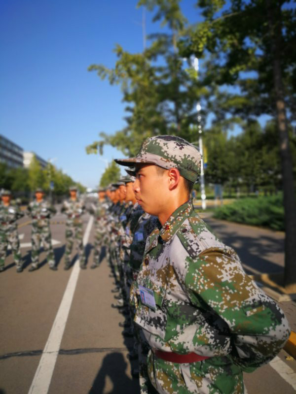 迎着阳光,每个同学们在教官的要求下不敢有丝毫的松懈。尤其是在军姿练习中,只是不到几分钟,有些同学们脸上便一颗接一颗地流下了晶莹的汗水。而教官们也是以军人的标准严格要求着每一位同学,他们耐心地手把手纠正着同学们的动作,一言一语地规范着同学们的姿势。虽然教官们对待同学们着实严厉,但大家也深知,他们是发自内心地对自己好。教官们想让同学们从他们接手的那一刻就要养成良好的行为习惯,一丝不苟地从军姿军容以及军人的精神等各个方面指导着同学们。 临近中午,伴随着哨声的响起,第一天上午的军训结束了。大家确实深感疲惫,但大家仍然发自内心地感谢教官们的付出,也为自己一上午的努力训练感到自豪。