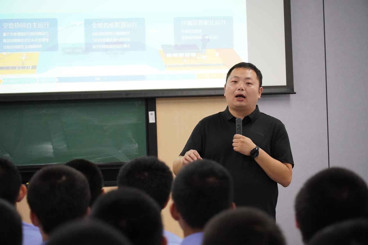 讲座尾声,彭峥寄语全体新生,鼓励他们深入了解行业发展大势,将个人专业学习与民航强国建设需求紧密结合,在未来的飞行生涯中找准定位、贡献力量。